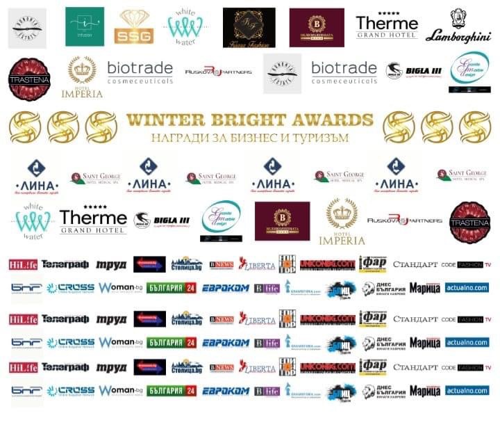Winter Bright Awards се осъществава с медийната подкрепа на Българско национално радио (БНР), телевизиите България 24, Код Фешън и Евроком, вестниците Стандарт, Труд, Телеграф, Марица, агенция Cross, онлайн медиите Pik.bg, Eпицентър бг, Blitz.bg, Тrafficnews.bg, Woman.bg, Столица.бг, LIBERTA.BG, Днес България (dnesbulgaria.com), Uniconbg.com, Черноморски фар (faragency.bg), Gramofona.com, Аctualno.com, Bnews.bg, Дромомания.бг, Blife.bg, Investbuild.bg, Тemida.tv и най-голямото ФБ списание HiLife във Фейсбук.