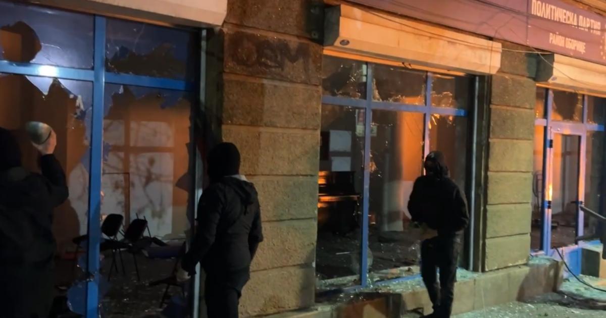 Младежката структура на ГЕРБ в София даде извънреден брифинг заради щетите по офиса на партията след протеста срещу Бюджет 2026 снощи