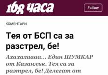 Разстрел на кого обаче? Логично, на подкрепящите Корнелия Нинова. За сведение на претендиращата за фактор в медийното пространство медия „168 часа”, привържениците на БСП са към 1 милион души.