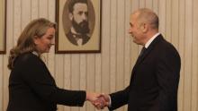 Президентът ѝ отговори, че той не изгаря от желание да създава служебни правителства. "Никога не съм казвал, че трябва да има удължен бюджет. Съглано Конституцията - сегашното правителство е задължено да си изпълнява задълженията в пълен обем. Аз не говоря за създаването на политически проект, но през годините това непрекъсното се внушава. Бързите решения и отказът за това да се чуе гласът на хората, доведе до тази абдикация. Искам да благодаря на достойните хора в администрацията, която ще довършат работата след абдикацията Ви. Предлагам Ви да не допускаме тези консултации да се превръщат в предизборна кампания", отсече Радев.