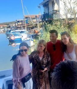 Талантливата дама се срещна с журналисти на снимачната площадка -Рибарското селище, пристигайки с екипа си на лодка по ръкавите.