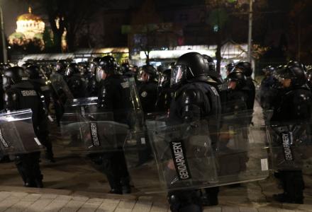 След това пък маскирани и облечени в черно младежи се опитаха да стигнат до централата на "ДПС-Ново начало" на столичната улица "Врабча". Те обаче бяха посрещнати от плътни кордони от жандармеристи при паметника на Васил Левски. Провокаторите хвърляха бомбички по полицаите и запалиха две кофи.